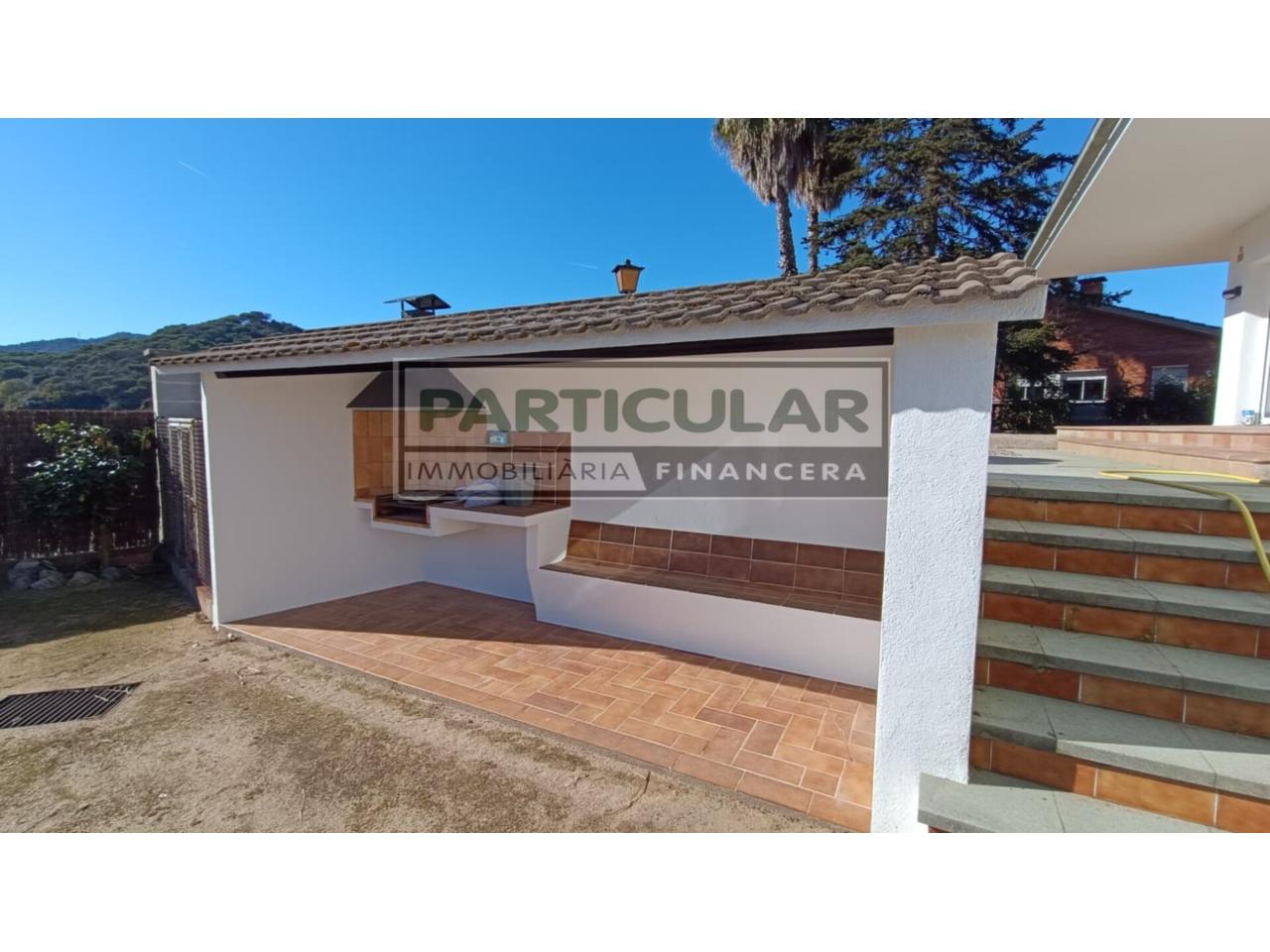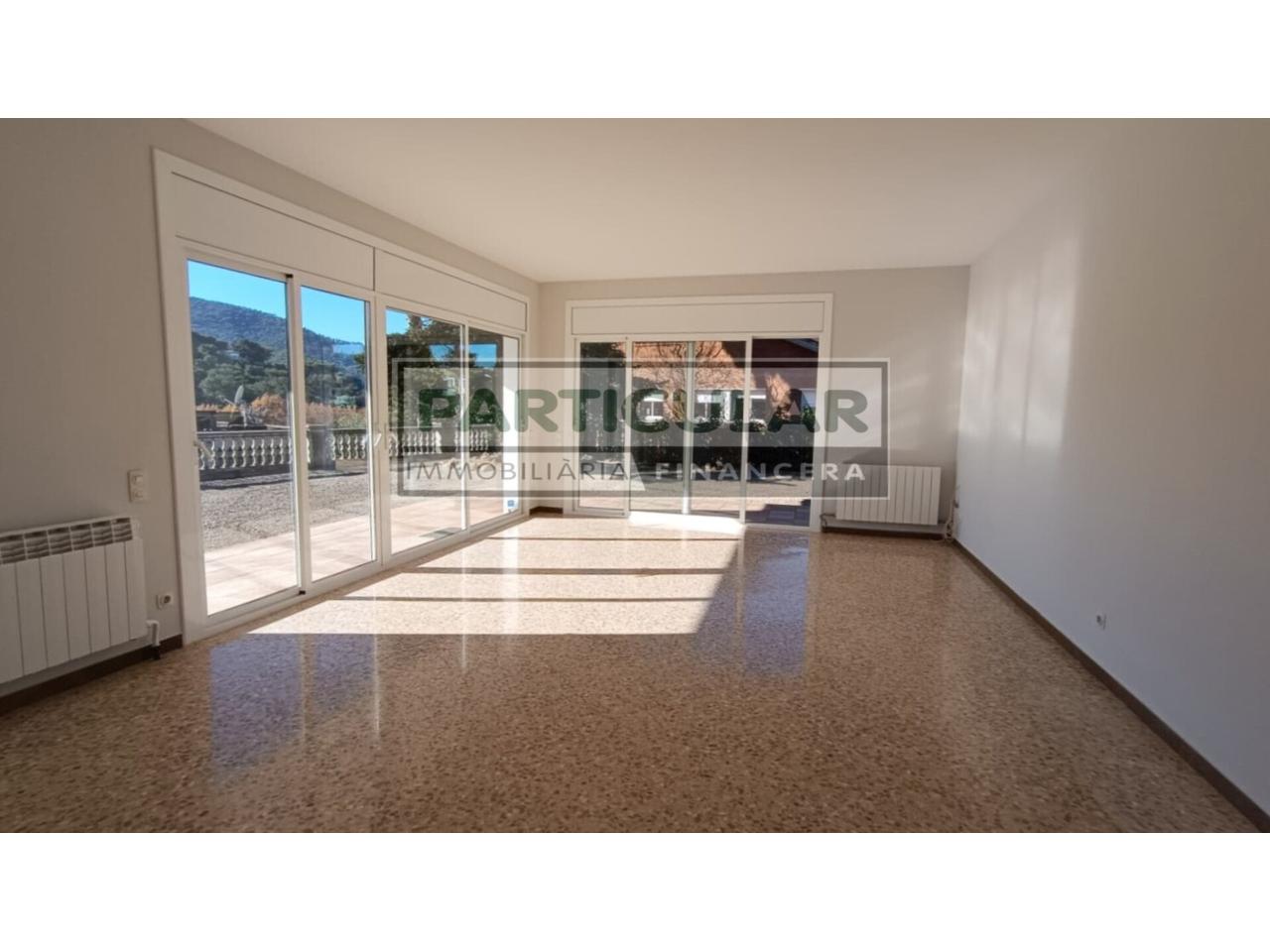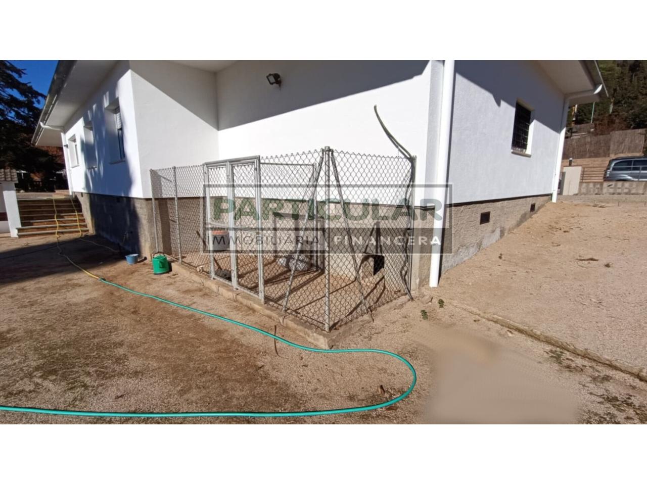 DescripciónCHALET UNIFAMILIAR de ALQUILER en VALLROMANES – Can Galvany (Vallès Oriental – BCN): En Vallromanes, alquiler de un encantador chalet unifamiliar comodísimo y en una sola planta. Con una superficie total de 239 m² y un amplio terreno de 1098 m². Esta vivienda cuenta con 5 habitaciones, 2 baños y un garaje para 2 vehículos. Cocina amplia, luminoso comedor con acceso al jardín y terraza propia, son algunas de las comodidades que ofrece. La casa está en buen estado de conservación, reformada, también con detalles de origen y cuenta con calefacción de gas natural. ¡No pierdas la oportunidad de vivir en este acogedor chalet en una de las zonas más exclusivas de Vallromanes! En un entorno residencial e íntimo, y a solo 6 minutos – 450 metros del centro pueblo a pie, 9 min. – 5,7 km de la Autopista del Mediterráneo AP-7 – E-15. A 25 min. – 20 km de la entrada de Barcelona. La distribución, a nivel de calle, tenemos el garaje para uno o dos vehículos y comunicado directamente a la vivienda, se accede a la vivienda a través de un porche de entrada, recibidor, y distribuidor a habitación doble, baño completo con ducha, gran salón estar comedor con salida a terraza – jardín, cocina office con salida a terraza – jardín, y mediante pasillo distribuidor a 3 habitaciones, baño completo, zona de aguas y garaje. El exterior dispone de jardín con mantenimiento, zona barbacoa y 2 cerrados para animales. (Ver vídeo) Estado de la Vivienda: En buen estado, con contrastes de origen, reformada y lista para entrar a vivir. CONDICIONES DE CONTRATO: Fianza 2 Meses. Imprescindible Referencias Económico – Laborales para seguro de alquiler y antes de realizar visita. Características Técnicas: Superficie total Construida 239 m². Superficie solar 1.098 m². Superficie útil 118,75 m². 5 habitaciones, 4 dobles: 10,61 m². 9,89 m². 13,68 m² + 12,38 m². 1 individual 7,74 m². 2 baños: 3-3 Pzs. D. D. 3,01 m². 5,66 m². Cocina Office 12,35 m². Comedor de 29,89 m² s/jardín. Sala Aguas – Lavadero 2,65 m². Garaje de 37,68 m². Año de construcción: 1977. Acabados: Calefacción con Gas Natural con Radiadores. Carpintería exterior Aluminio, vidrios dobles. Carpintería interior madera lacada en blanco. Suelos de Terrazo. Recién pintado.