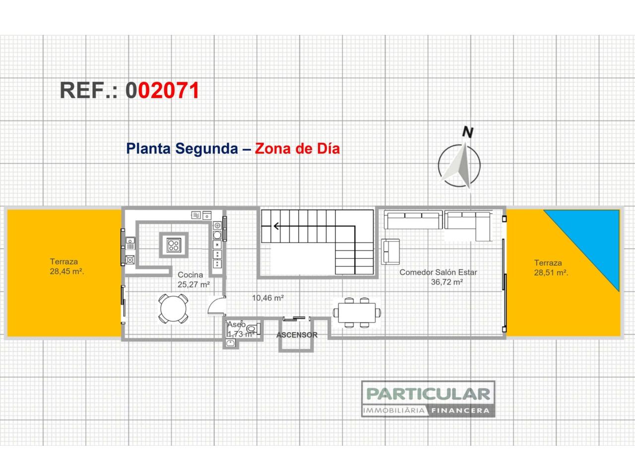 Características técnicas: Superficie Catastral: 276 m². Superficie útil: 206,37 m². Superficie Registral: 215 m². Sala Estar Comedor 36,72 m², A/Ac + B/c. S/Terraza. Cocina Office 25,72 m². A/Ac. S/Terraza. Habitaciones Dobles 13,15 m², A/Ac. -11,35 m², A/Ac. -16,50 m², A/Ac. -27,93 m². Habitación individual 5,02 m². 3 Baños 4-6-3 Pzs. 3,49 m². -13,42 m². -5 m². 1 Aseo 2 Pzs. 1,54 m². Garaje 72,27 m². 3 Terrazas de 7,31 m². -28,51 m². -28,45 m² (Con jacuzzi exterior). Aire Acondicionado, Calefacción Gas Natural, radiadores. Carpintería interior Cerezo, Carpintería Exterior Aluminio, doble cristal. Persianas aluminio automáticas. Suelos de Gres y Parquet. Alarma. Ascensor. Obra del 1995. Orientación Este. Esta propiedad se encuentre en régimen de propiedad horizontal con un coeficiente de participación del 50% del total del edificio.